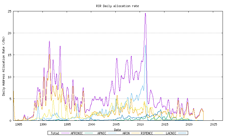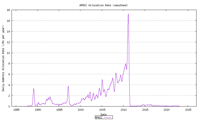 Before looking in detail at the advertised address space, the IANA allocation data and RIR allocation data will be examined, and a relatively straightforward form of data analysis will be performed over the data series.